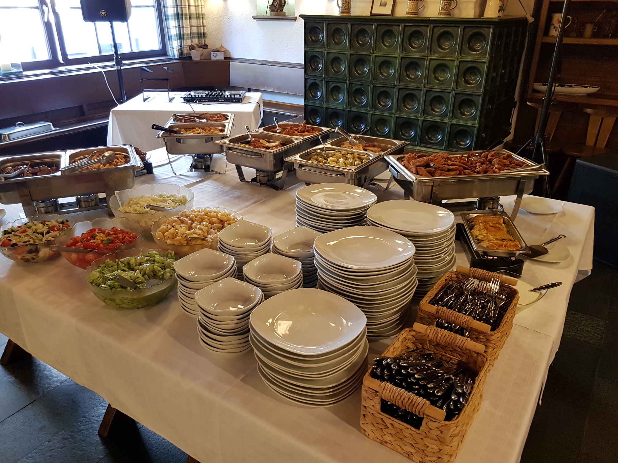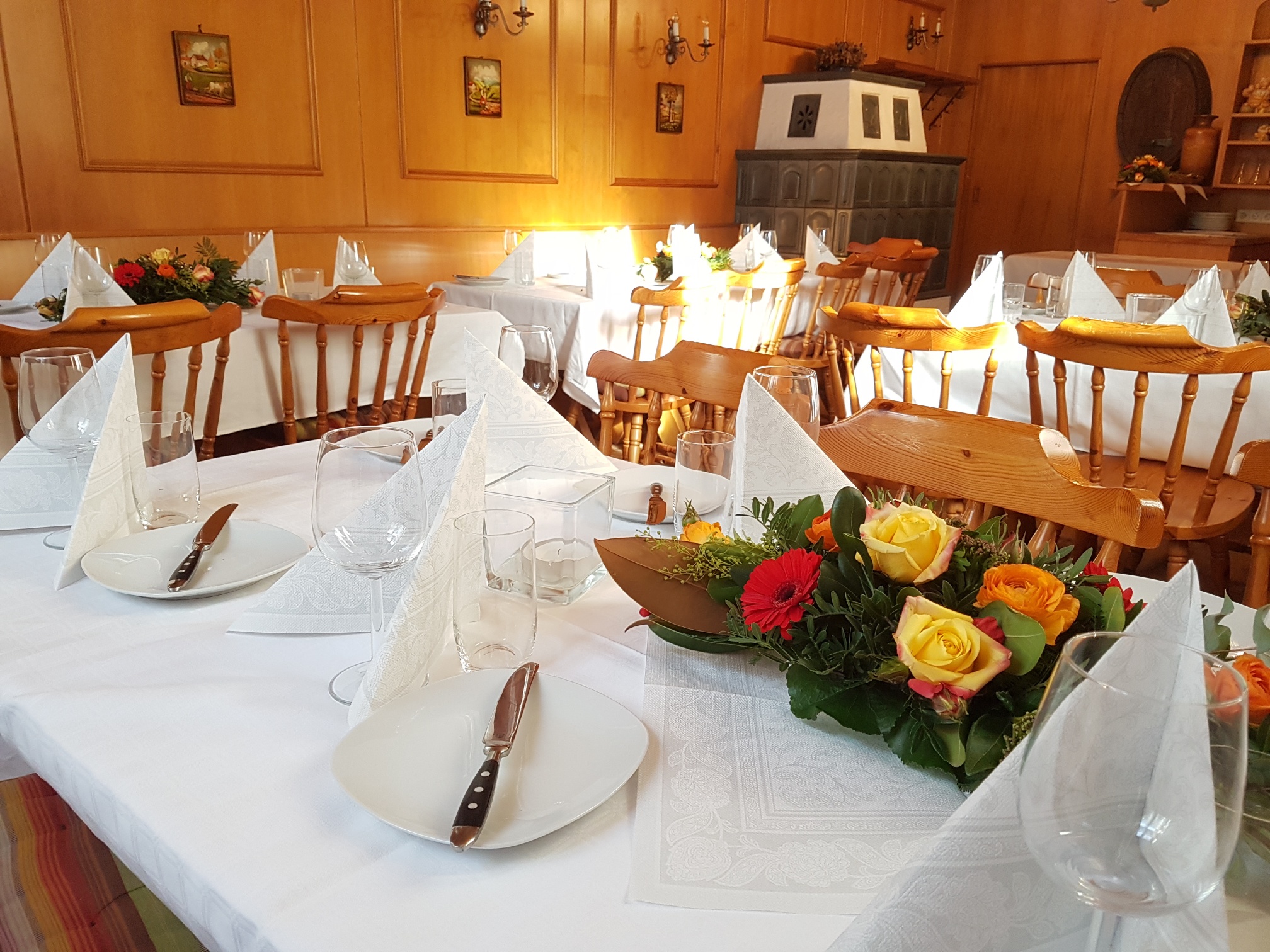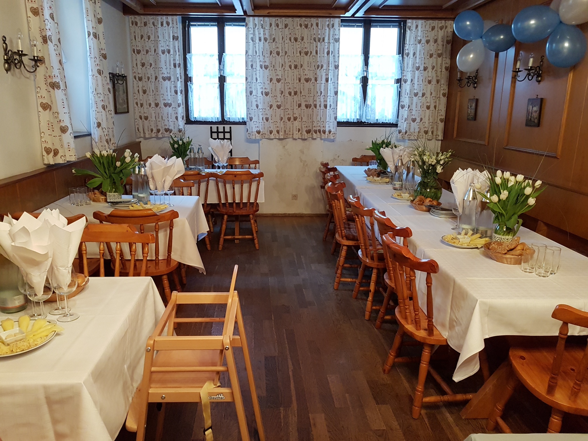 Für Ihre Feste stehen bei uns drei Räume für insgesamt bis zu 200 Personen zur Verfügung. Sie finden bei uns einen Raum für 80, einen für 60 und einen für 30 Personen, noch mehr Leute finden im Schankraum und Stüberl einen gemütlichen Platz. Wir öffnen für Ihre Feste ab etwa 50 Personen und stellen uns ganz auf Ihre Wünsche ein. Möchten Sie ein warmes oder kaltes Buffet, welche Weine und Getränke dürfen wir kredenzen? Feste in unseren Räumen sind Open End – feiern Sie, so lange Sie möchten. Auch während der Aussteckzeiten stehen wir Ihnen für Ihre Feste zur Verfügung.